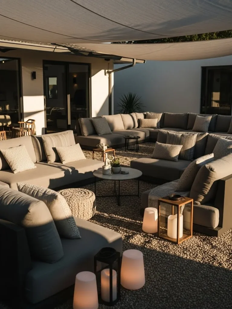Adding shade is essential for a lounge patio. Whether you use a pergola, fabric canopy, large umbrella, or a shade sail, covering part of the space makes it enjoyable throughout the day. Shade also protects furniture fabrics from sun fading. Over the years, lounge patios have become one of the most requested backyard upgrades because they turn unused spaces into full-time relaxation zones. When combined with soft outdoor rugs, throw pillows, lanterns, and comfortable seating, the patio feels luxurious even though the foundation itself is budget-friendly.