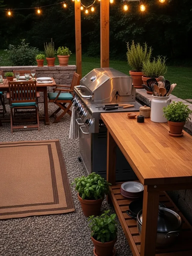 8. A Gravel Outdoor Kitchen Patio for Cooking and Entertaining