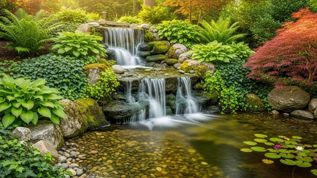 A pondless waterfall is ideal for homeowners who want the serene sound of running water without the maintenance of a full pond. In this setup, water flows over rocks and disappears into a hidden reservoir underground. It’s perfect for smaller backyards or families with children, offering beauty and safety simultaneously. This design is flexible, allowing you to shape the waterfall to fit narrow spaces or highlight specific garden areas, creating a stylish and modern focal point.