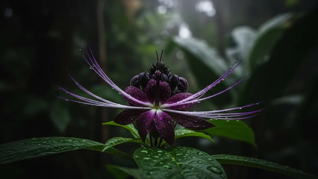 The Bat Flower is one of the most theatrical plants available. Its long black bracts and whisker-like filaments give it an exotic, almost otherworldly appearance. With its unusual shape and mysterious presence, this plant becomes an immediate focal point in any garden. Many gardeners grow it in shaded spots where its deep tones stand out against lush green backgrounds.