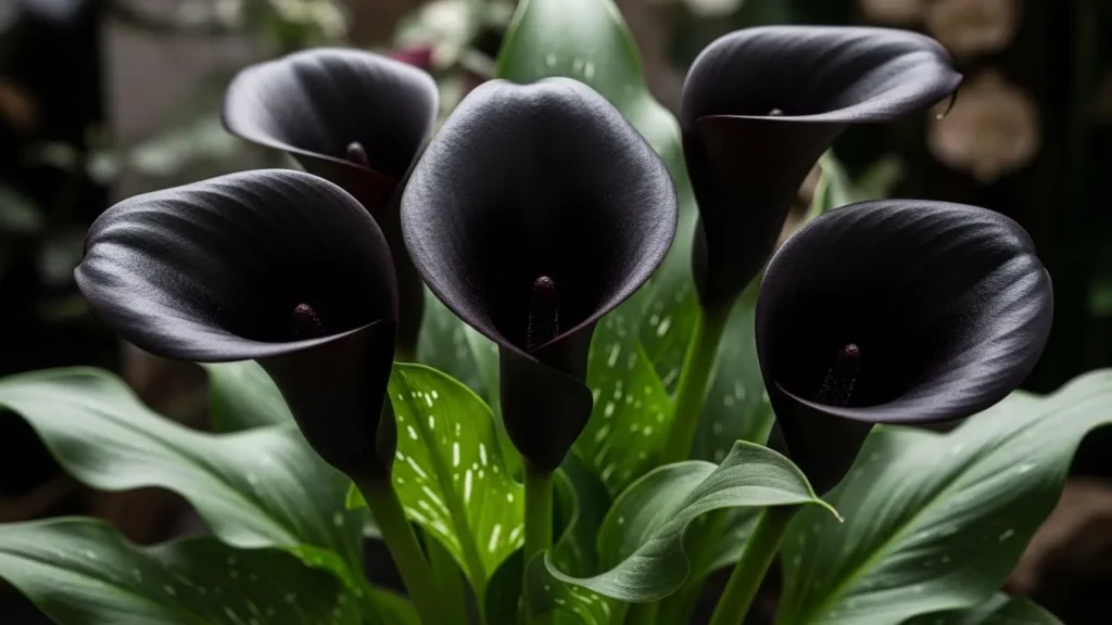 Black calla lilies have a sleek, polished look that makes them one of the most sophisticated flowers for a gothic garden. Their deep, funnel-shaped blooms appear glossy and smooth, creating a sense of elegance that fits well in both formal and natural garden designs. They often carry subtle burgundy tones that add dimension, especially in sunlight.