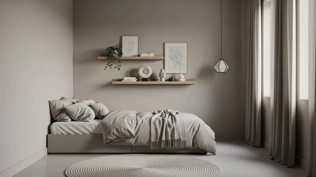 Greige, the perfect mix of gray and beige, is dominating neutral bedroom trends in 2026. It brings the sophistication of gray and the warmth of beige into a harmonious blend. Greige works well in minimalist bedrooms, pairing effortlessly with floating shelves, modern bed frames, and subtle décor. The result is a clean, contemporary aesthetic that feels calming without appearing stark.