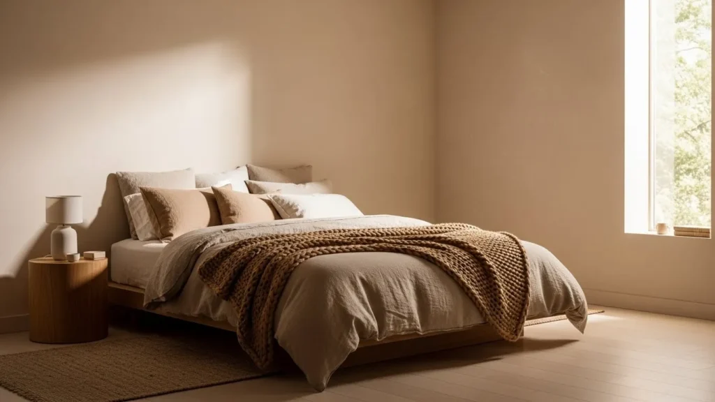 Layering multiple shades of beige is a simple yet effective trend for 2026 neutral bedrooms. Using variations of beige—from pale cream to warm sand—creates depth and dimension without relying on bold colors. Combining these tones with light wood furniture and minimal décor keeps the space airy and harmonious.