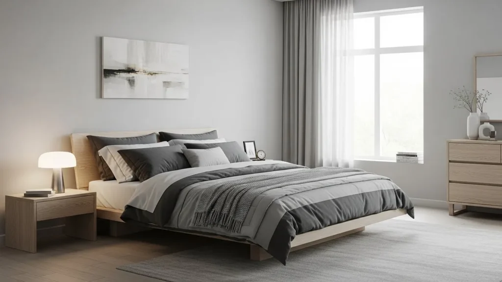 Enhance gray bedrooms with layered textures, from plush rugs to cotton throws, to prevent the space from feeling cold. Light wood or matte metal furnishings add warmth and dimension. This neutral palette is ideal for creating a modern, Pinterest-worthy bedroom that is timeless, elegant, and effortlessly calming.