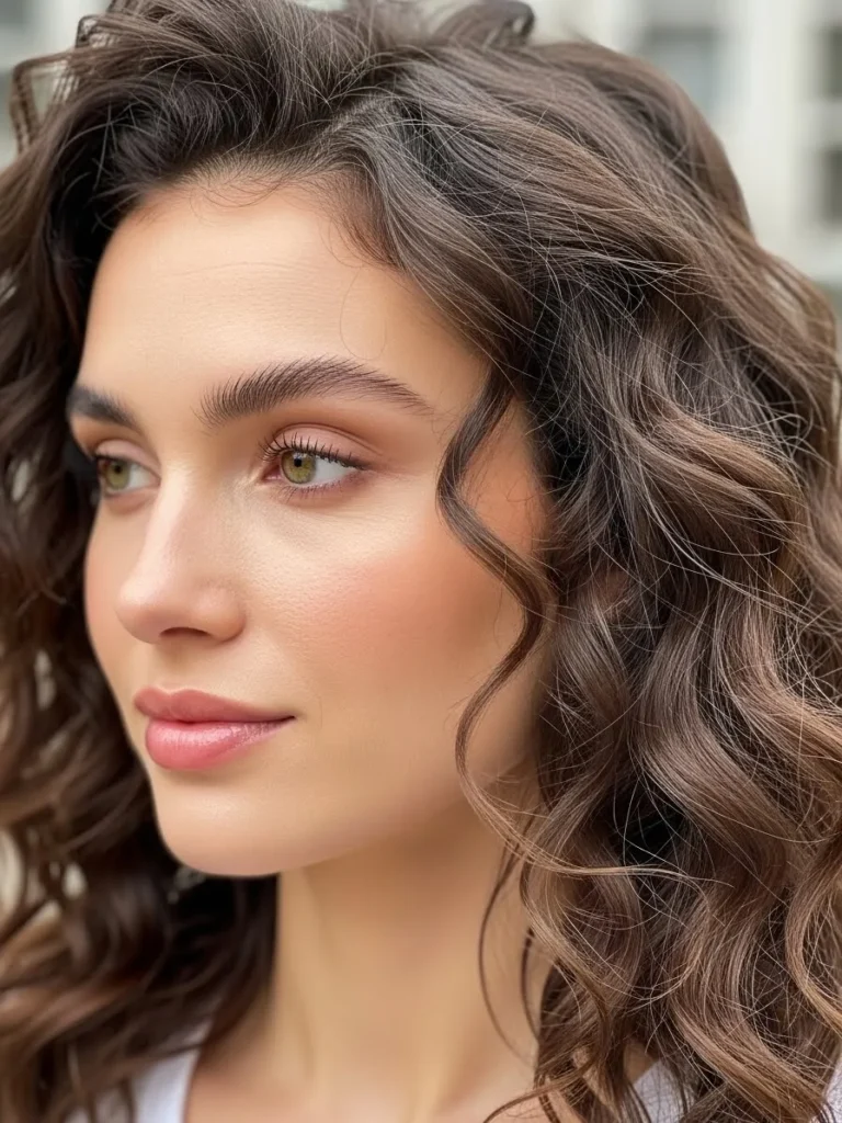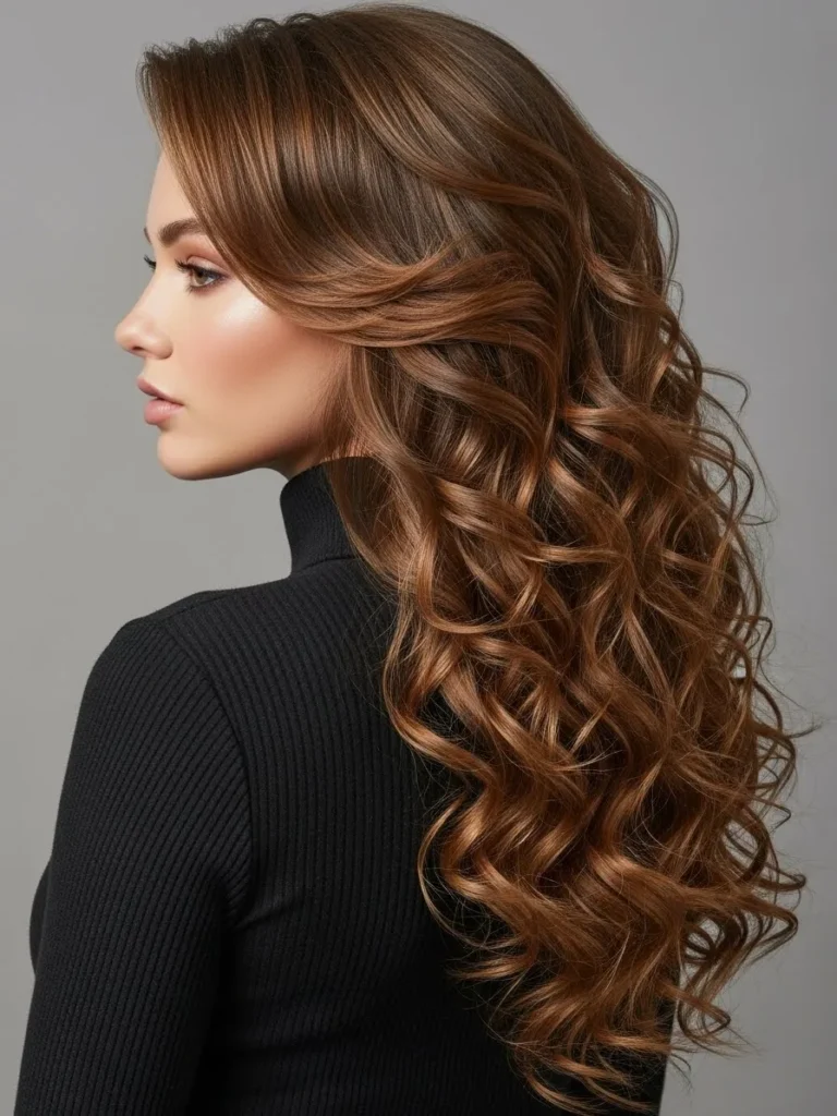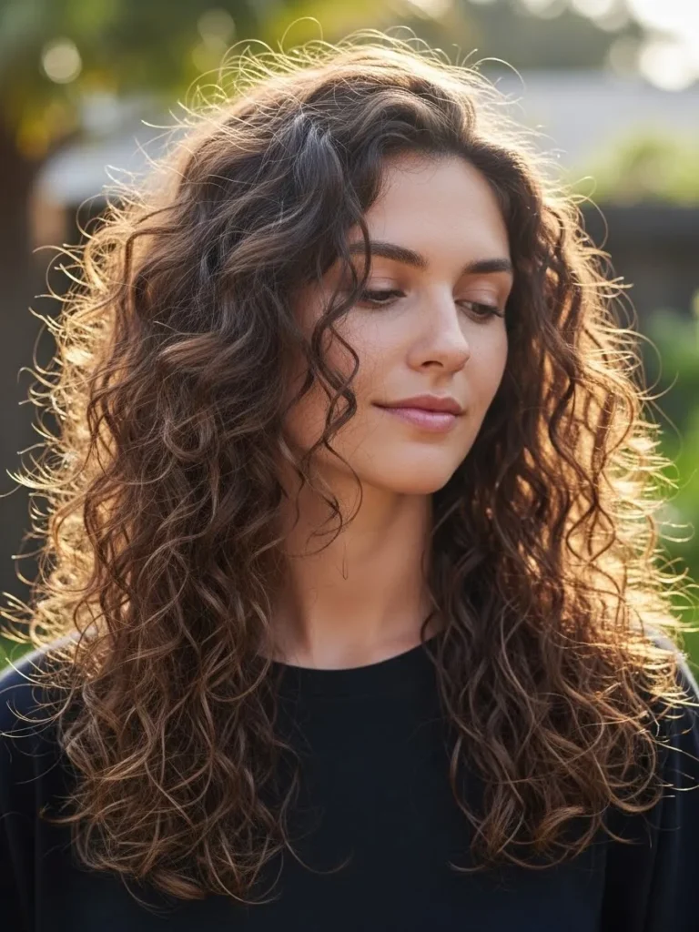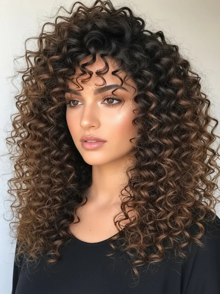 This style works well for anyone who wants shape without losing length. The curls closest to the face are cut to fall forward naturally, avoiding harsh lines. When styled properly, these curls blend seamlessly into the longer hair, creating movement and lightness without looking layered-heavy.