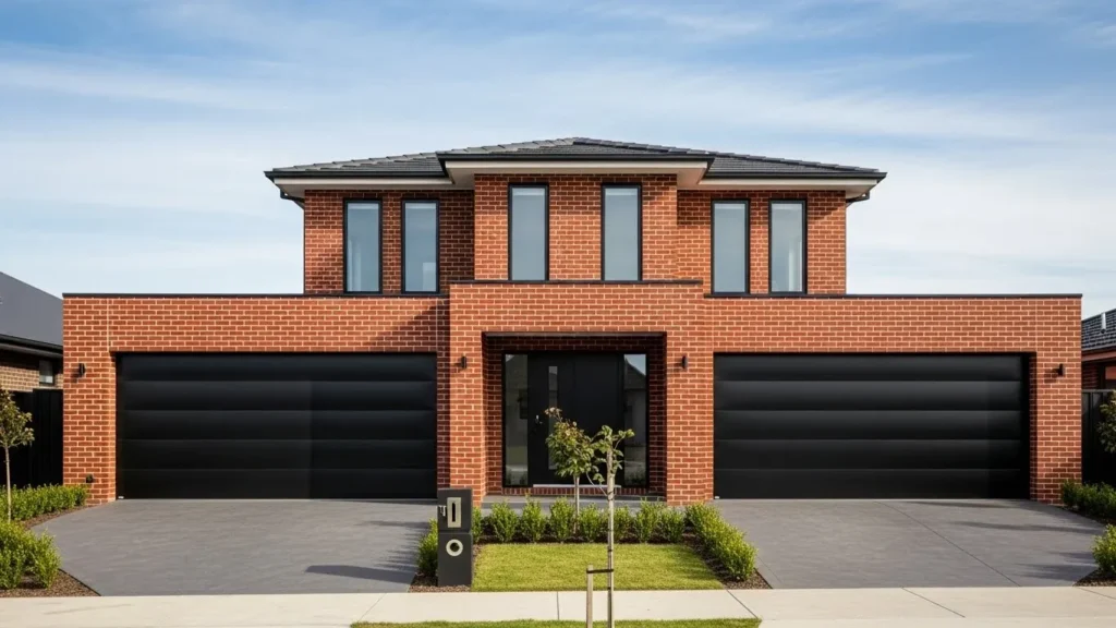 Garage doors often take up a large portion of the front elevation, especially in modern homes. Painting them black against red brick creates contrast and reduces visual clutter. I have found that black garage doors tend to disappear visually, letting the brick take center stage.
