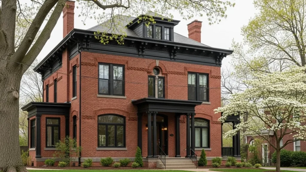 When working with historic homes, respect is essential. Black trim can modernize a historic red brick house without erasing its character. I always advise keeping trim profiles consistent with the original design while updating the color.