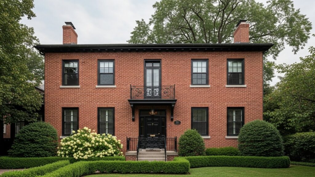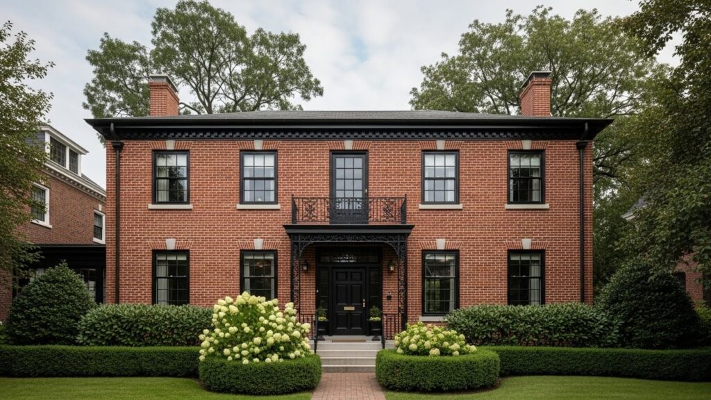 Black metal railings, light fixtures, and trim details pair naturally with red brick. Over the years, I have seen how these elements add texture and interest without overwhelming the facade.