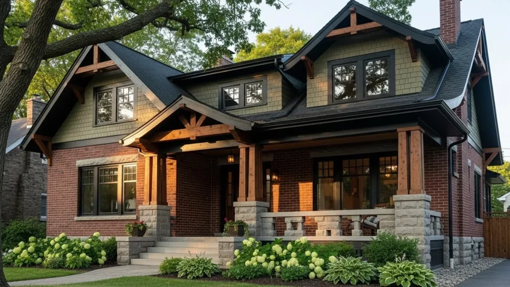 Craftsman homes are all about detail, and black trim helps those details stand out. When red brick is paired with black trim on window frames, exposed beams, and porch elements, the craftsmanship becomes more visible.