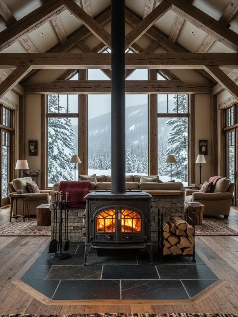 Open-plan interiors spread heat unevenly, especially when vents rely on forced air. A wood-burning stove placed closer to the center of the space helps solve this problem. The stove radiates in all directions and warms more than one zone. I have seen this transform cold modern designs into winter-friendly homes without altering architecture.