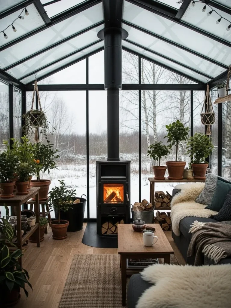 14. A Stove Installed in a Sunroom for Four-Season Use