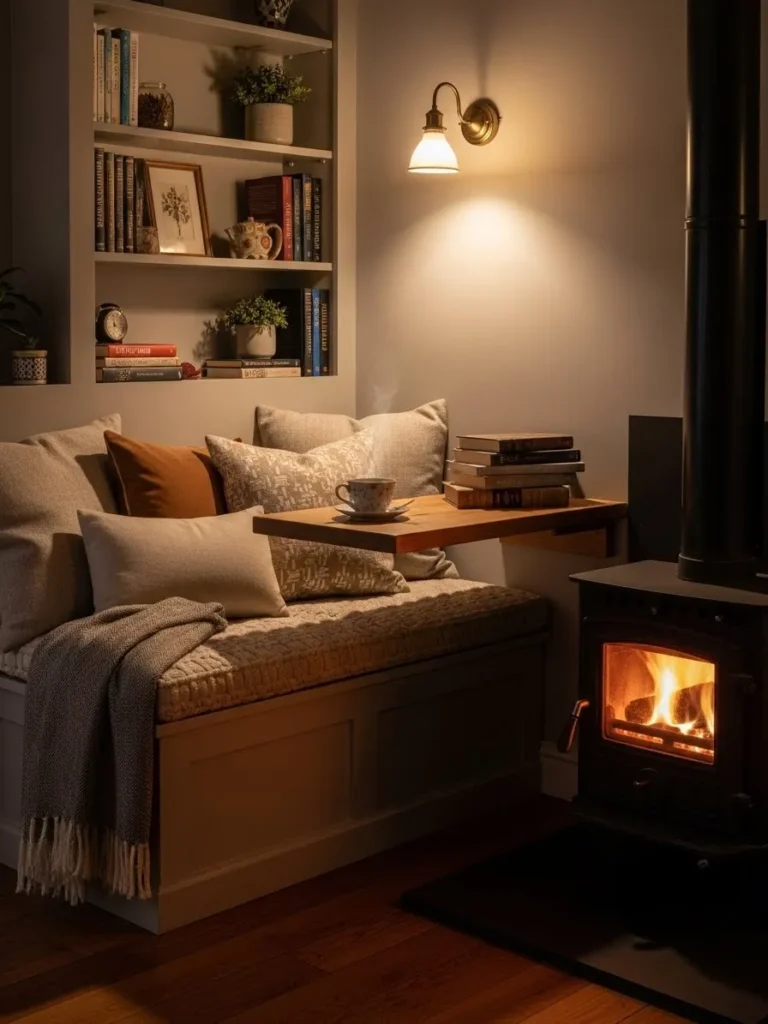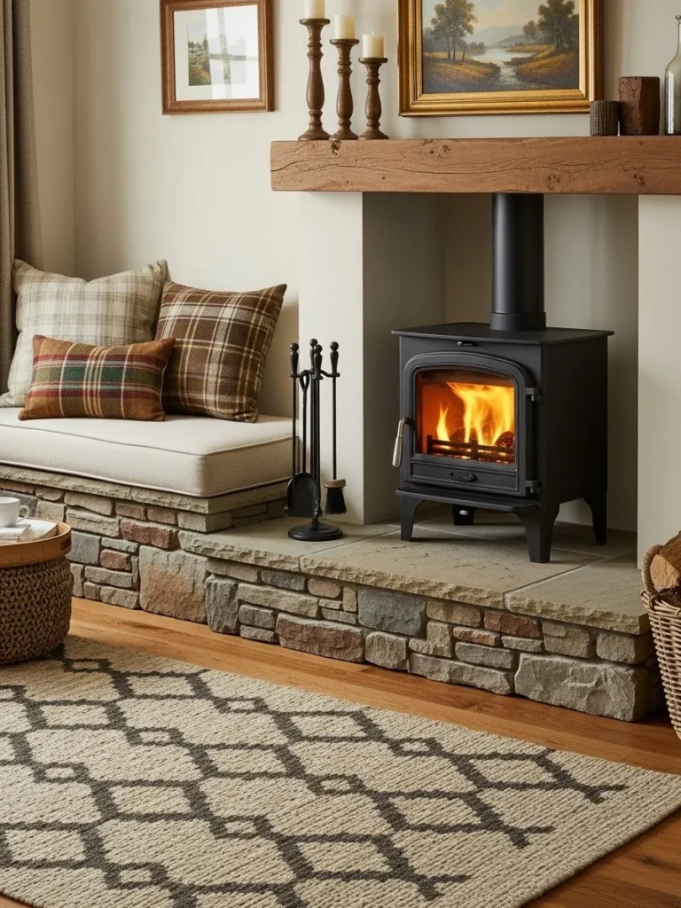 Fire attracts conversation. Over the years, I have seen some of the most successful stove layouts include built-in benches, raised hearth seating, or cushioned window bays nearby. This transforms the heating area into a retreat inside a home. Instead of sitting on a sofa across the room, people lean closer, warm their hands, and linger.