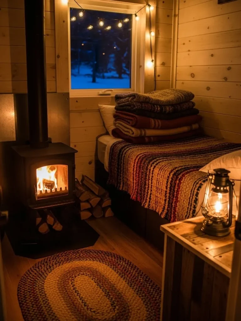 7. A Small Stove in a Bedroom for Night-Long Warmth