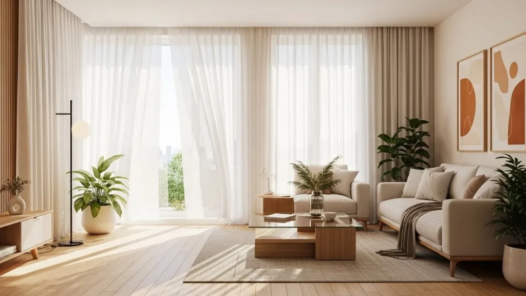If you want your apartment to look modern, use natural light as the main design anchor. The trend in 2026 is to remove anything that blocks sunlight. Heavy curtains are out. Lightweight sheers or simple roller blinds that filter but don’t darken the room are in. The more light that enters, the more modern the room feels. Even if your apartment isn’t naturally bright, choosing reflective surfaces—light rugs, pale fabrics, and soft-toned wood—makes the space look open without feeling washed out.