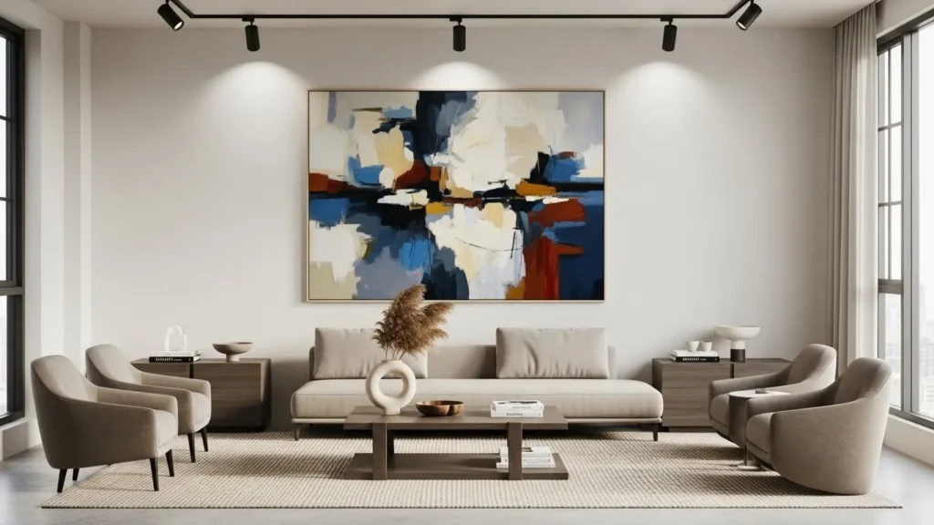 In 2026, wall art is not about matching sets or generic prints. The trend is personal expression. Whether it’s a large abstract piece, a photograph you love, or a painting from a local artist, the art should speak to you rather than match the sofa. Art becomes a focal point without overwhelming the room. One large piece is usually better than many small ones, especially in an apartment.