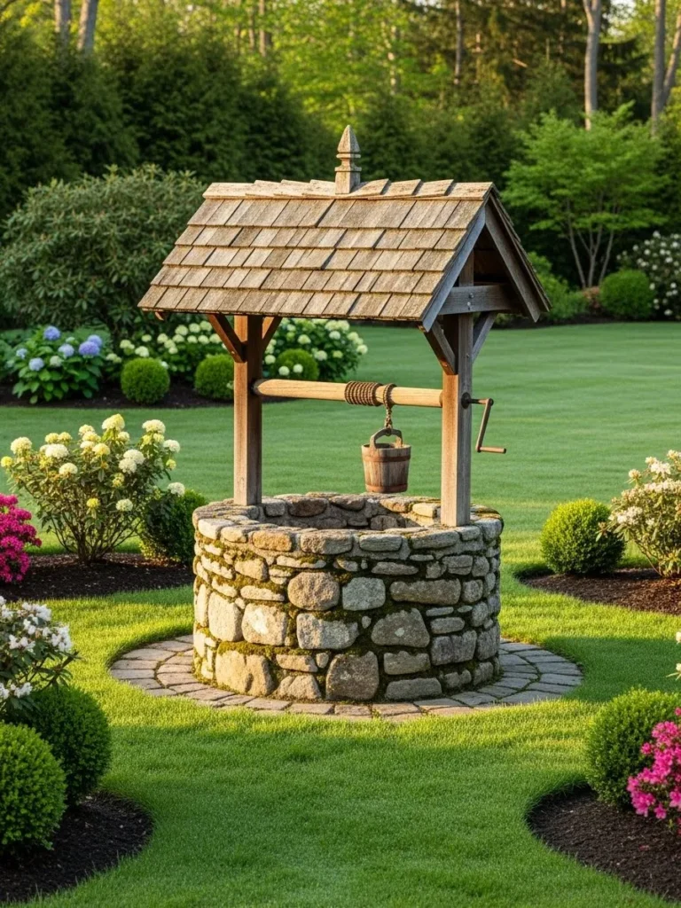 2. Stone Wishing Well for a Strong Garden Focal Point