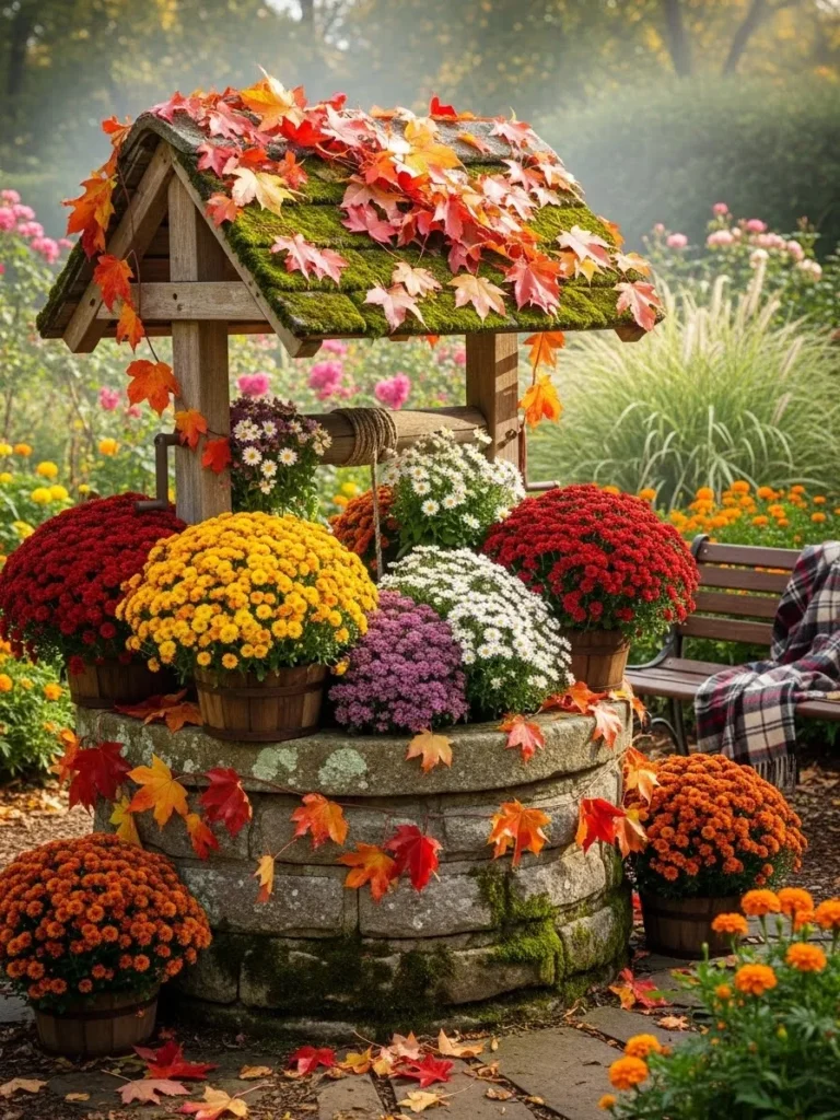Turning a wishing well into a planter adds both beauty and function. Seasonal flowers allow the look to change throughout the year while keeping the feature fresh and engaging.