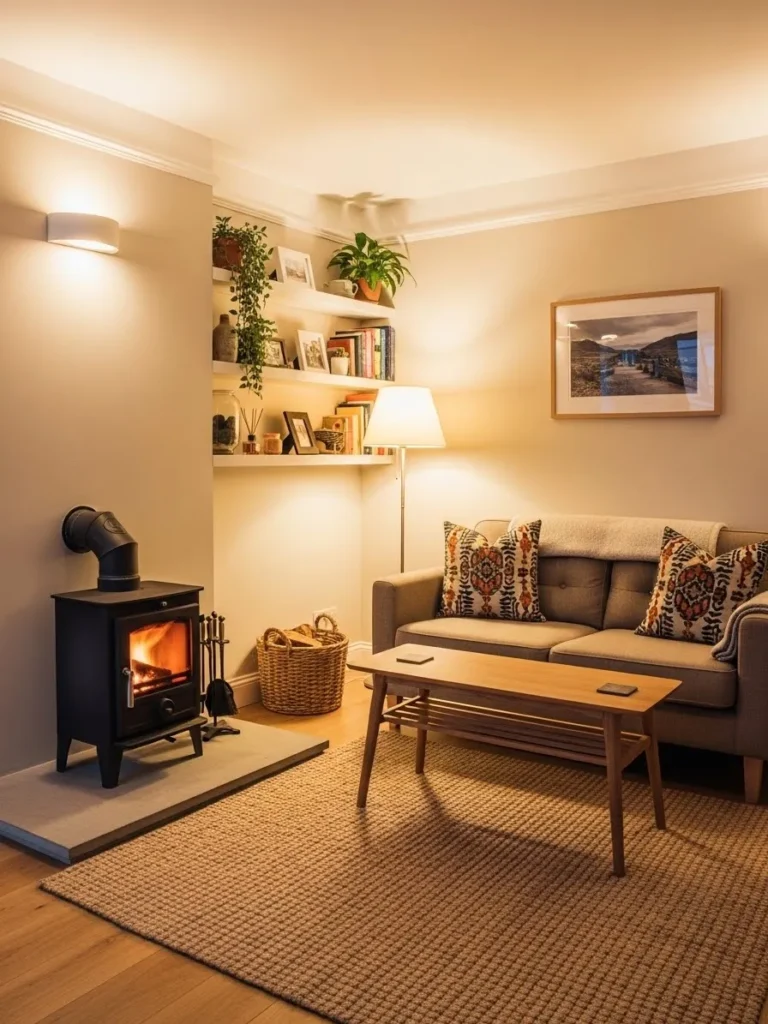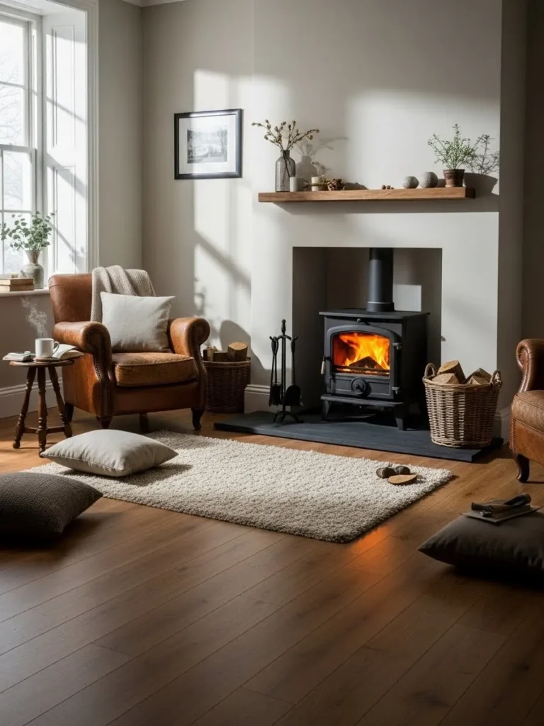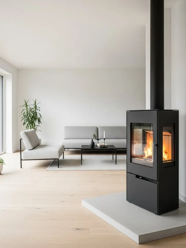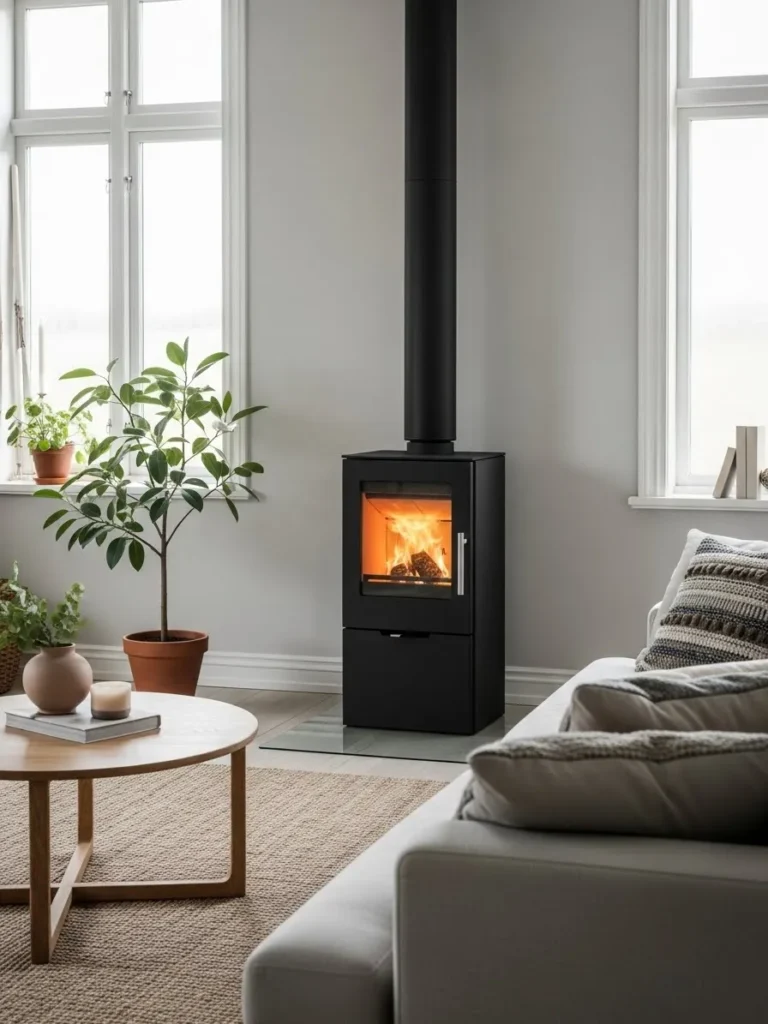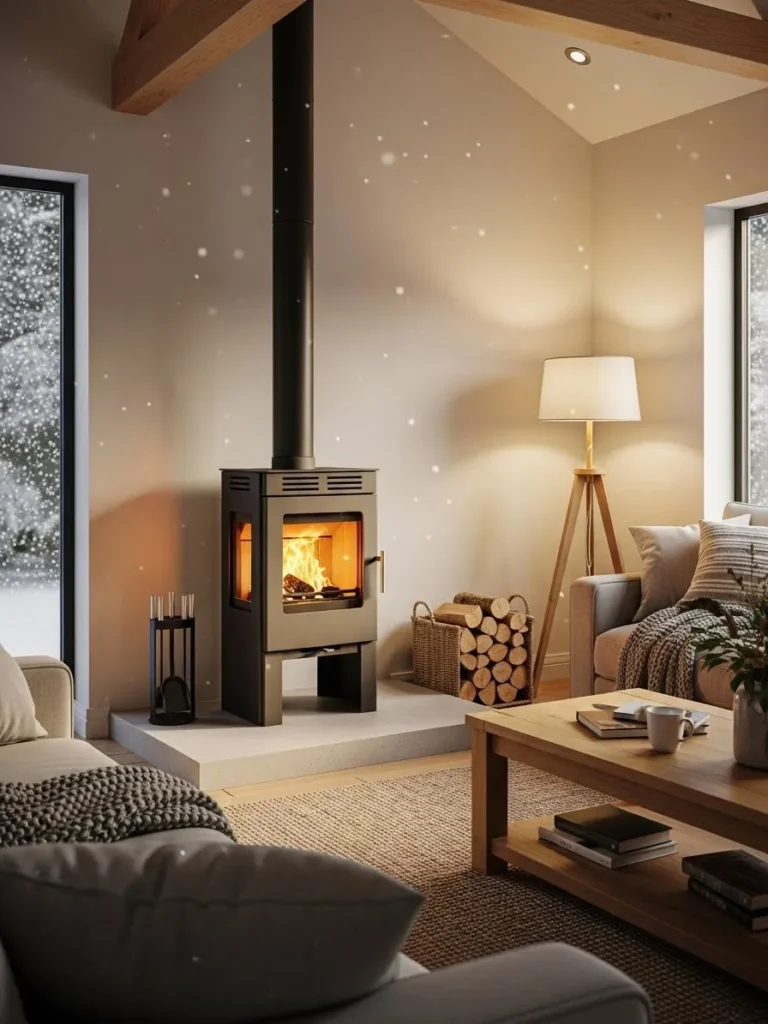A freestanding wood-burning stove placed centrally in a room creates heat that spreads evenly and naturally. I have seen this setup work extremely well in open-plan homes and converted barns.