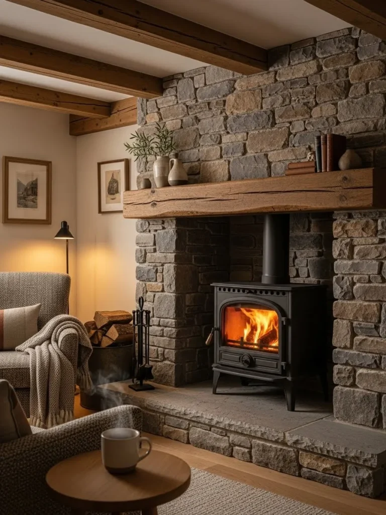Nothing pairs with fire like stone. A stove set into a natural stone surround feels permanent, safe, and deeply cozy. I have seen this approach transform ordinary living rooms into spaces people naturally gather in.