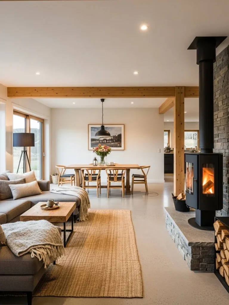 #8.Wood-Burning Stove in an Open-Plan Layout