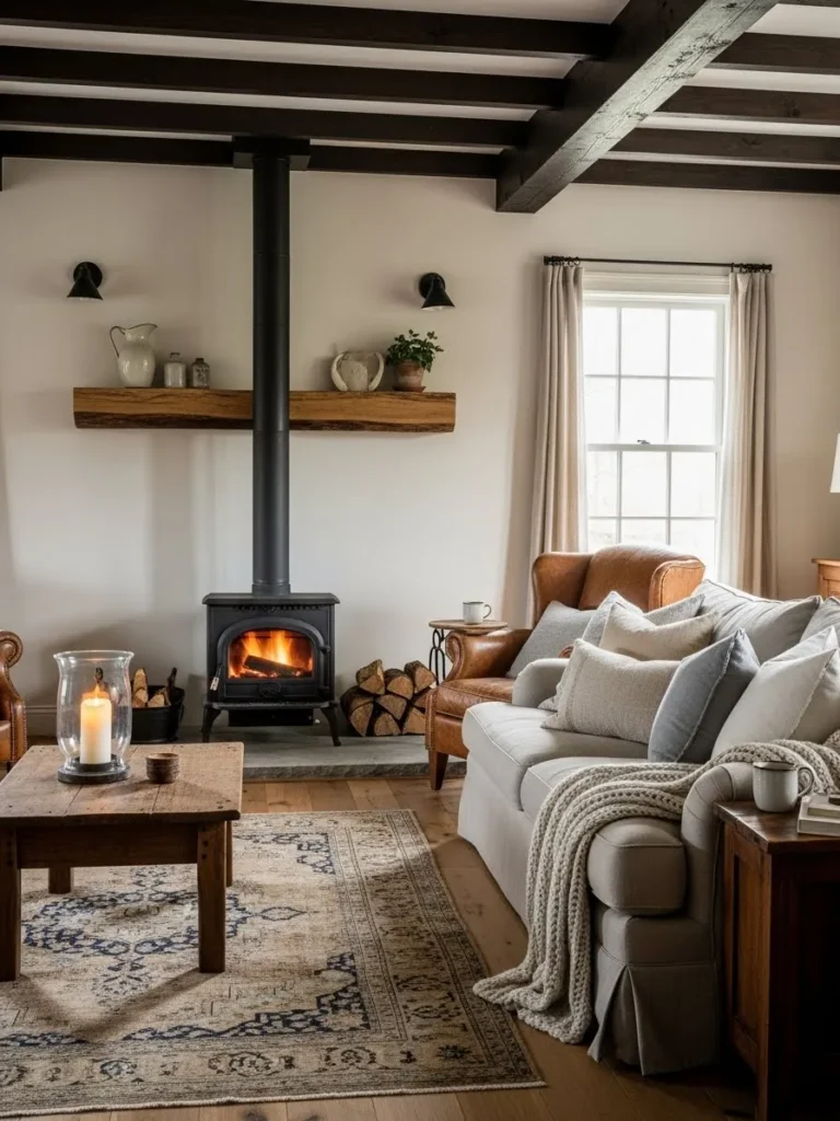 Farmhouse interiors and wood-burning stoves are natural partners. I have helped modernize many farmhouse homes while keeping the stove as the heart of the space. Simple finishes, visible textures, and solid materials all support this pairing.