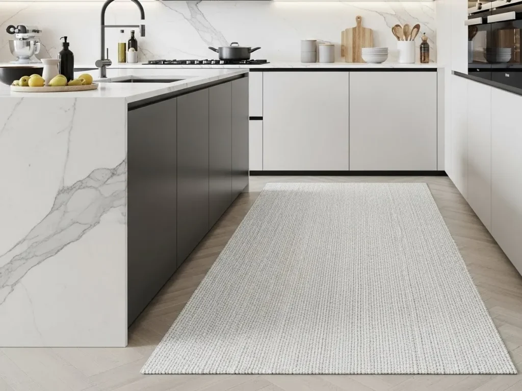 In addition to visual appeal, neutral rugs provide enhanced comfort during long cooking sessions, making the kitchen more enjoyable and practical. Designers often recommend flat-weave or low-pile rugs for easy maintenance and a sleek look. These rugs blend beautifully with matte cabinets, slim countertops, and warm lighting. When layered thoughtfully, they transform the kitchen into a luxurious yet cozy environment that feels polished and lived-in—perfect for stylish, interactive modern homes.