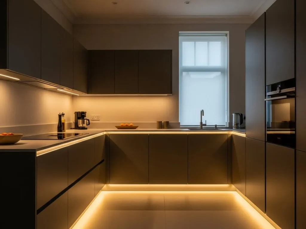 Beyond aesthetics, LED strip lighting adds functional value by illuminating prep spaces and creating clear visibility without harsh brightness. The gentle ambiance encourages relaxed evenings, cooking sessions, and social gatherings. Paired with matte cabinetry and a neutral palette, the lighting becomes a signature design accent that elevates the kitchen’s ambiance. This concept beautifully merges modern technology with minimalist elegance, making it one of 2026’s most desirable features.