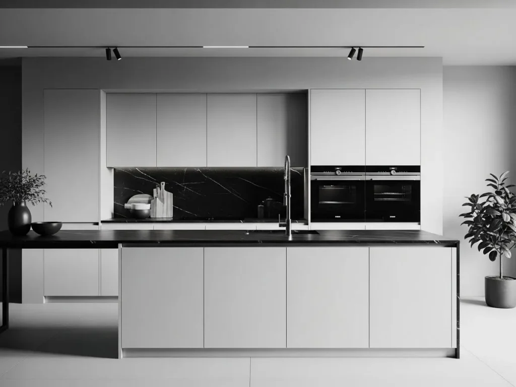 Monochrome palettes continue to define minimalist luxury in 2026 kitchens, offering a clean and striking look that feels both timeless and contemporary. Using black, white, and subtle gray tones, the monochrome style creates visual harmony without overwhelming the eyes. This palette highlights architectural lines and elevates the kitchen’s structure, making every detail—from cabinet grooves to countertop edges—stand out beautifully. The simplicity of monochrome design encourages a calm, balanced, and highly refined cooking environment.