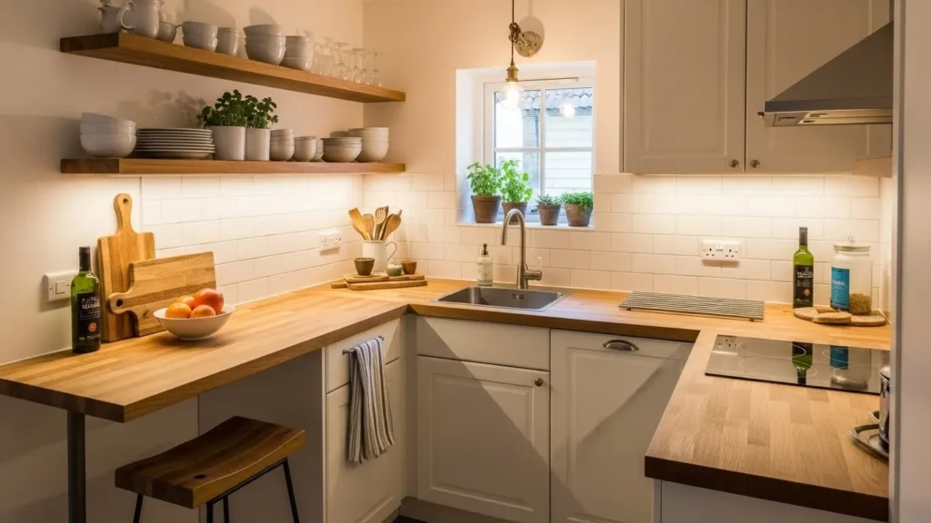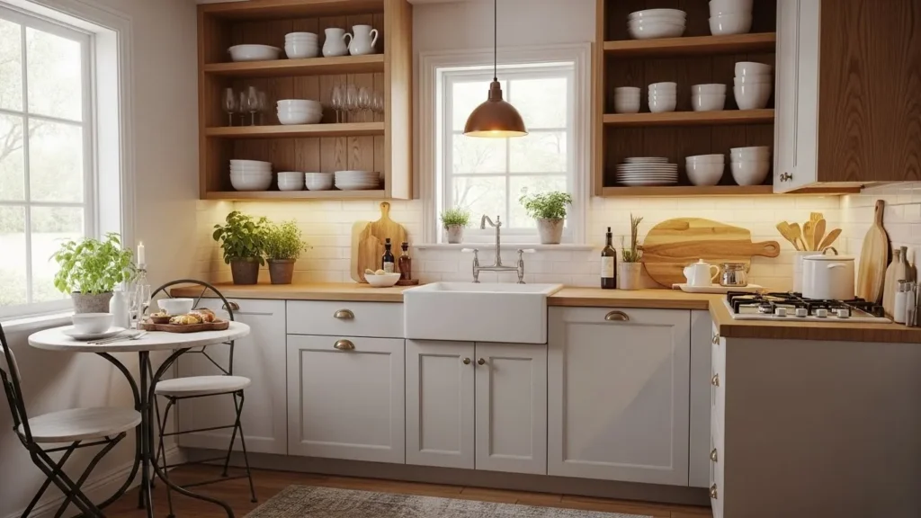 Strategic lighting—under-cabinet LEDs and warm-tone pendants—creates an inviting atmosphere. Multifunctional furniture and compact appliances maximize efficiency without sacrificing beauty. Even the smallest kitchens can feel cozy, modern, and beautifully styled when designed with thoughtful intention.