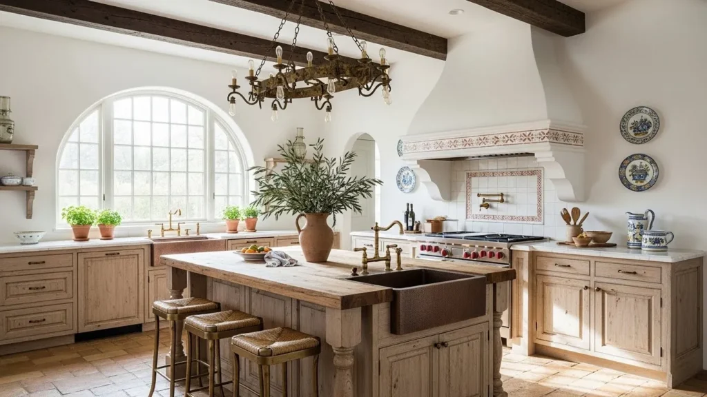 Mediterranean kitchens bring warmth and soul into 2026 design trends, offering an inviting blend of earthy colors and handcrafted charm. Terracotta tiles and rustic beams create a natural, sun-kissed foundation that feels instantly cozy. White plaster walls keep the space bright, while the warm textures add depth and character. Homeowners love this style for its timeless beauty and ability to bring a relaxing, vacation-like atmosphere into daily cooking spaces.