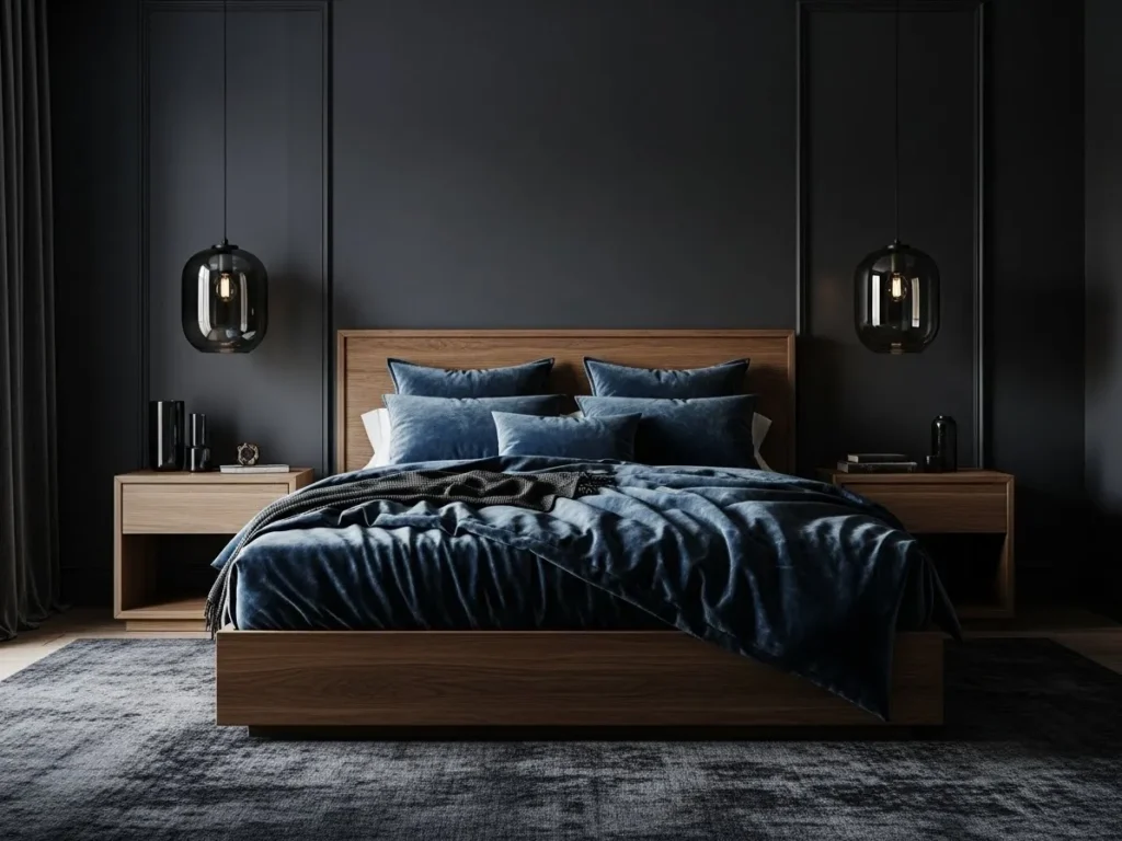 Moody dark elegance has become one of the most sophisticated bedroom styles for 2026. Deep charcoal, rich navy, and espresso tones create a dramatic backdrop that feels intimate and luxurious. Velvet bedding, dark wood furniture, and warm lighting add layers of depth, making the room feel like a private sanctuary. This design complements homeowners who enjoy bold, atmospheric spaces that exude confidence and high-end style, without losing comfort or warmth.