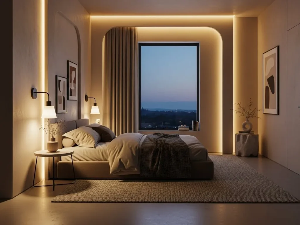 Layered lighting is one of the most impactful 2026 bedroom design trends, transforming master suites into warm, inviting sanctuaries. Instead of relying on a single overhead light, this style blends sconces, LED strips, pendant lights, and subtle floor lighting to create depth and atmosphere. The result is a room that feels cozy yet sophisticated, adjusting easily from bright and energizing to dim and relaxing. This makes it perfect for homeowners who value both functionality and ambiance.