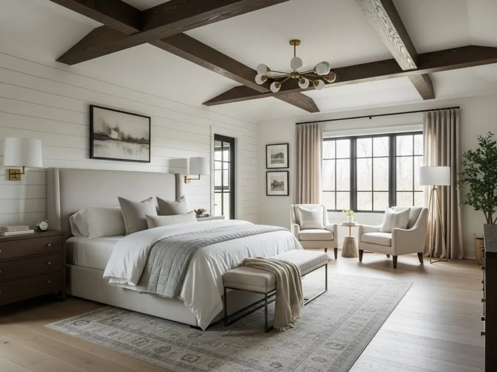 Modern farmhouse bedrooms continue evolving in 2026, blending rustic warmth with contemporary sophistication. Natural materials—like reclaimed wood, cozy textiles, and soft neutrals—bring charm and comfort to the space. The look is elevated through clean lines, modern furniture, and subtle accents that keep the room feeling fresh rather than overly rustic. This combination creates an inviting environment where warmth meets refinement, making it perfect for homeowners who love a cozy yet stylish atmosphere.