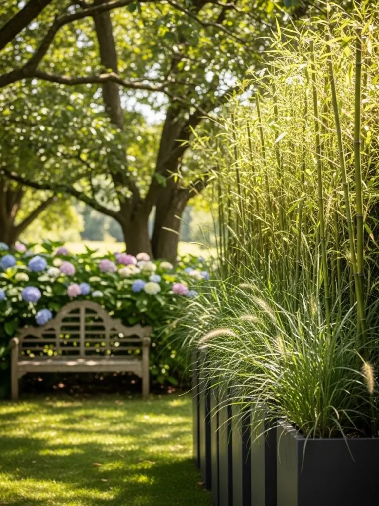 If you want privacy but don’t want the heaviness of solid fencing, pots can be a softer and more natural alternative. Arranging tall containers in a row creates a living barrier that feels breathable yet protective. Bamboo, grasses, and small trees work well for this purpose. A potscape barrier can also be rearranged as needed, which makes it more flexible than permanent structures. This approach blends privacy with beauty.