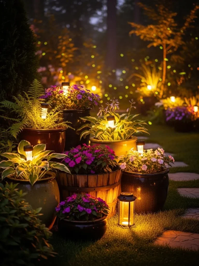 Soft lighting enhances potscapes dramatically once the sun goes down. Placing solar or low-voltage lights near containers creates gentle shadows and highlights foliage textures. This simple addition extends the use of your garden into the evening and makes your pots feel like sculptural elements. Outdoor lighting also adds a sense of safety and warmth. Well-lit potscapes are one of the easiest ways to elevate a backyard without large renovations.