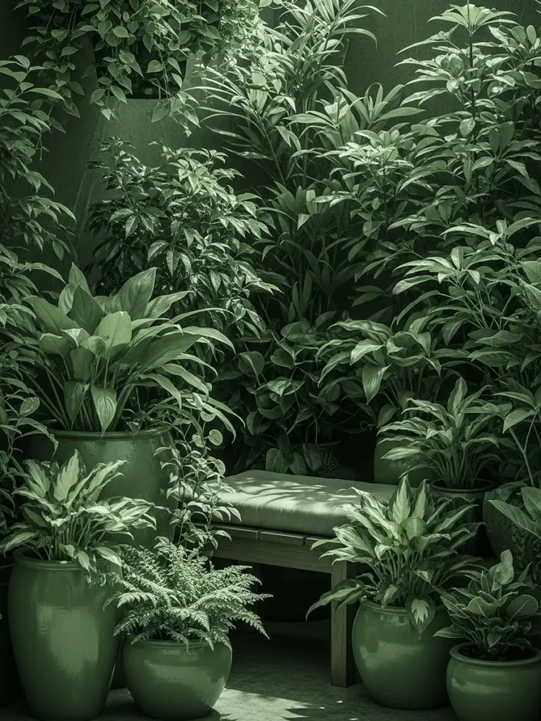 Green pots blend naturally into their surroundings, making them ideal for peaceful, quiet corners. When filled with lush foliage plants, they produce a soothing atmosphere perfect for reading, meditation, or morning coffee. The monochromatic look creates harmony and reduces visual noise. This kind of space gives you a break from bold colors and creates a restorative environment.