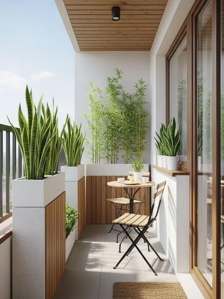 In tight areas, narrow pots can be a lifesaver. Their slim footprint allows them to fit where traditional containers won’t, such as between steps or along balcony rails. Tall, narrow pots naturally draw the eye upward and work beautifully with upright plants like bamboo, ornamental grasses, or snake plants. Because they take advantage of vertical space, they help small gardens feel less cramped while still adding greenery and structure.