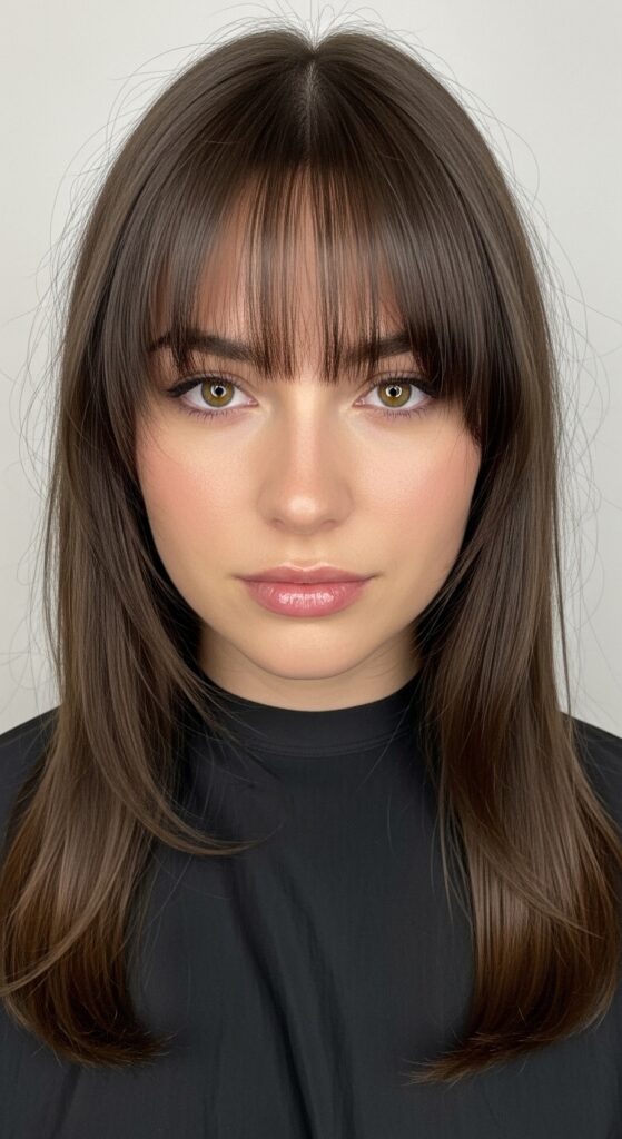 Curtain bangs pair beautifully with straight hair. They frame the face gently without the commitment of full bangs.