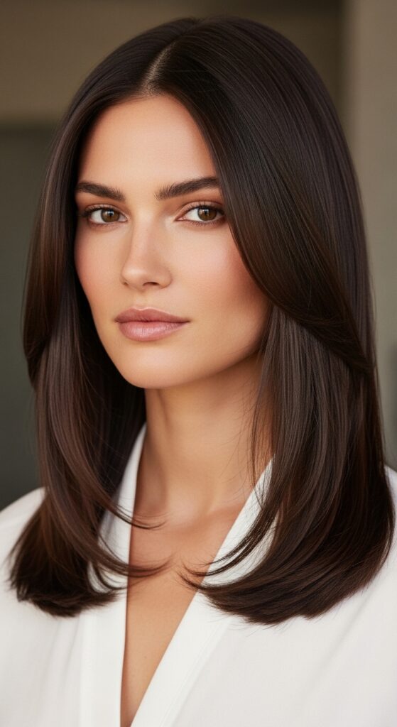 This style suits oval and round faces particularly well, but it can work for almost anyone if the cut is adjusted properly. Keeping the hair smooth and flat at the roots is key here. A lightweight serum or heat protectant helps maintain that clean finish without making the hair greasy.